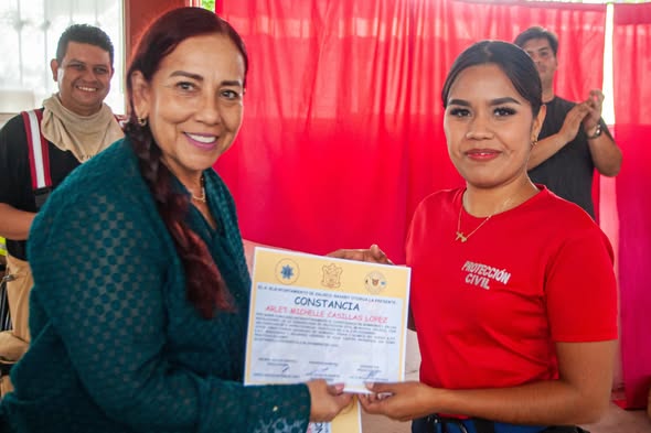 La presidenta municipal, Maestra Anabel Guerrero, encabezó la clausura y entrega de reconocimientos a las y los compañeros que concluyeron la capacitación de Protección Civil: Curso Básico de Bomberos Fase 1, impartido por Bomberos del Estado de Nayarit, Grupo Philadelphia y Bomberos del Aeropuerto de Tepic, en materia de atención y control de incendios.