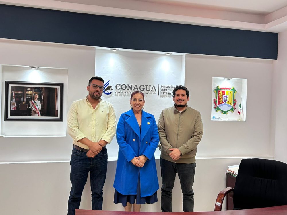 Con el propósito de avanzar y gestionar acciones para el mejoramiento de las redes de distribución de agua potable y saneamiento en colonias y ejidos de Xalisco, la presidenta municipal, Maestra Anabel Guerrero y el Director del Oromapas, Esteban Rocha, sostuvieron una productiva reunión con el Director Local de CONAGUA, Ing. Gerardo Leyva Álvarez, con quien acordaron seguir trabajando en coordinación para llevar a cabo varios proyectos.