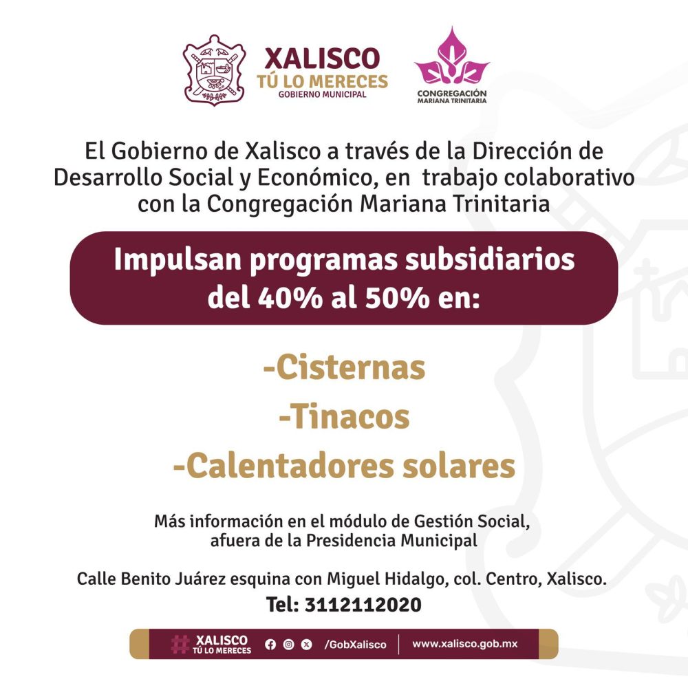 Con el propósito de mejorar los hogares de nuestro municipio, el Gobierno de Xalisco en colaboración con la Congregación Mariana Trinitaria impulsa programas subsidiarios.