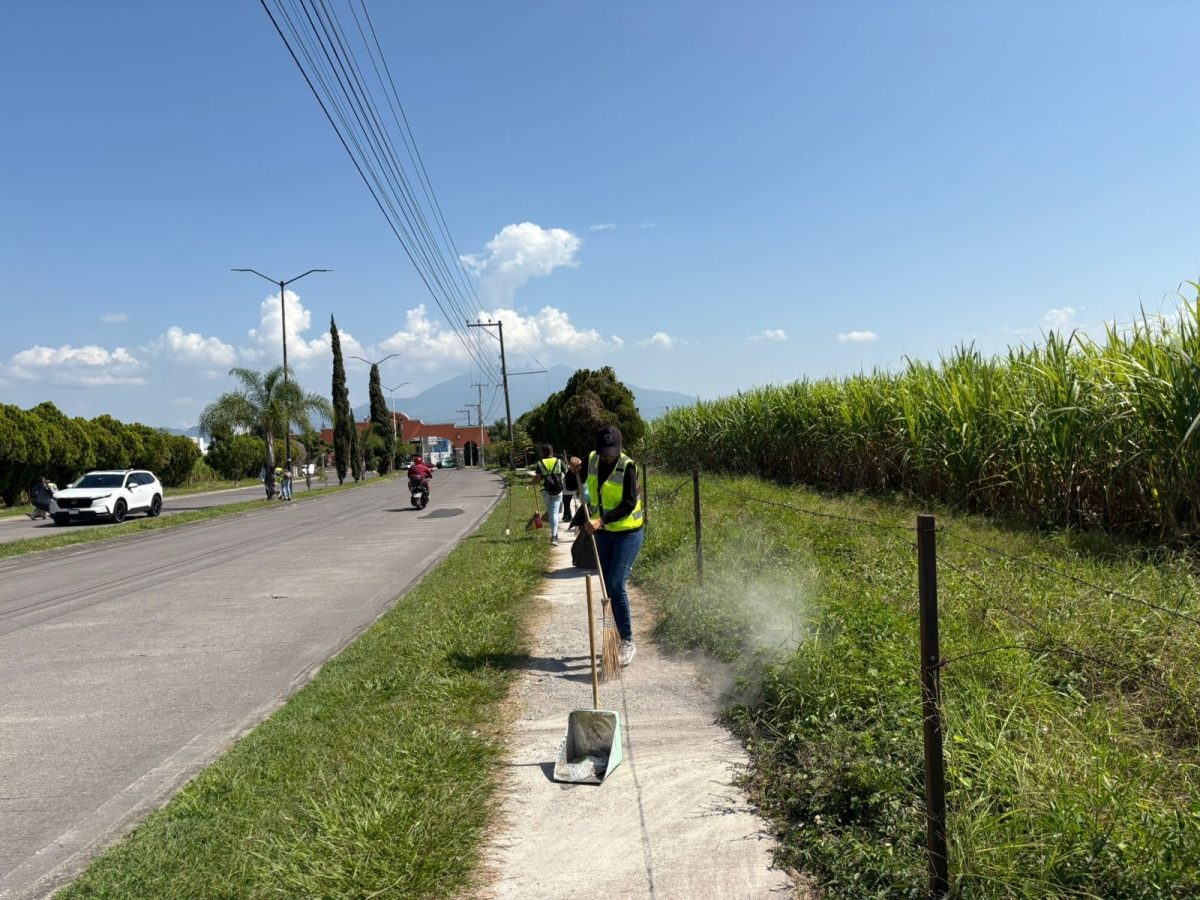 El equipo de Servicios Públicos del Gobierno de Xalisco realiza labores de limpieza y podas en camellones y banquetas de los fraccionamientos Puerta del Sol y La Xalisca.